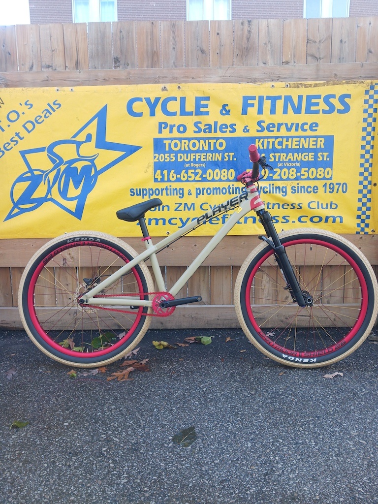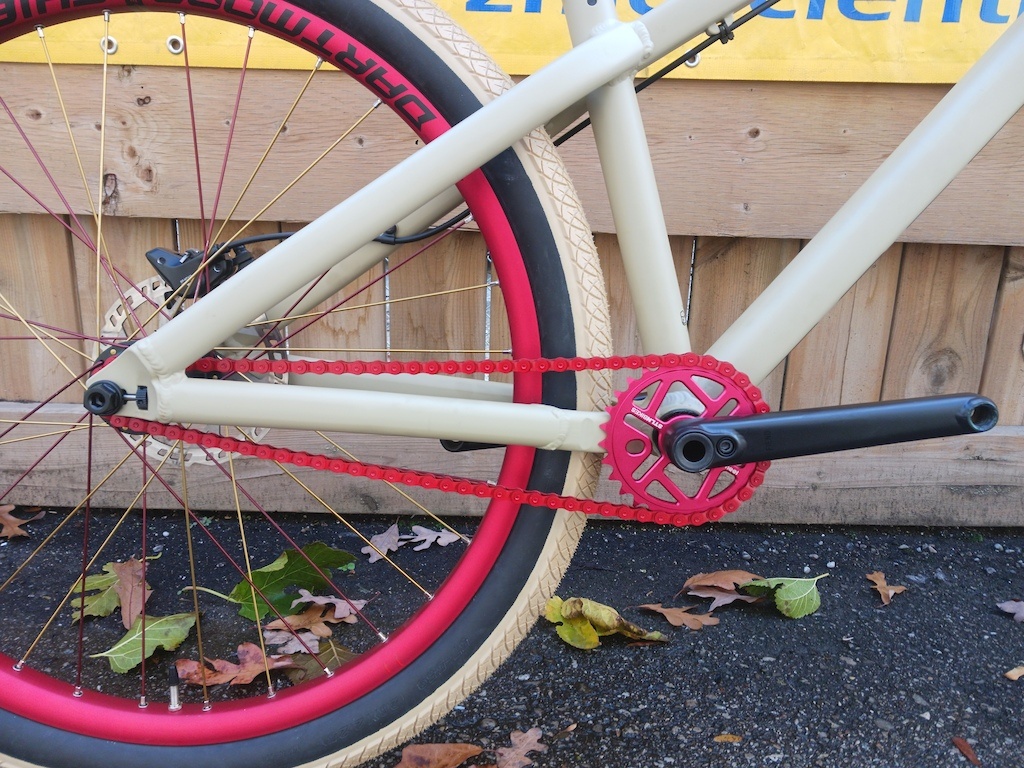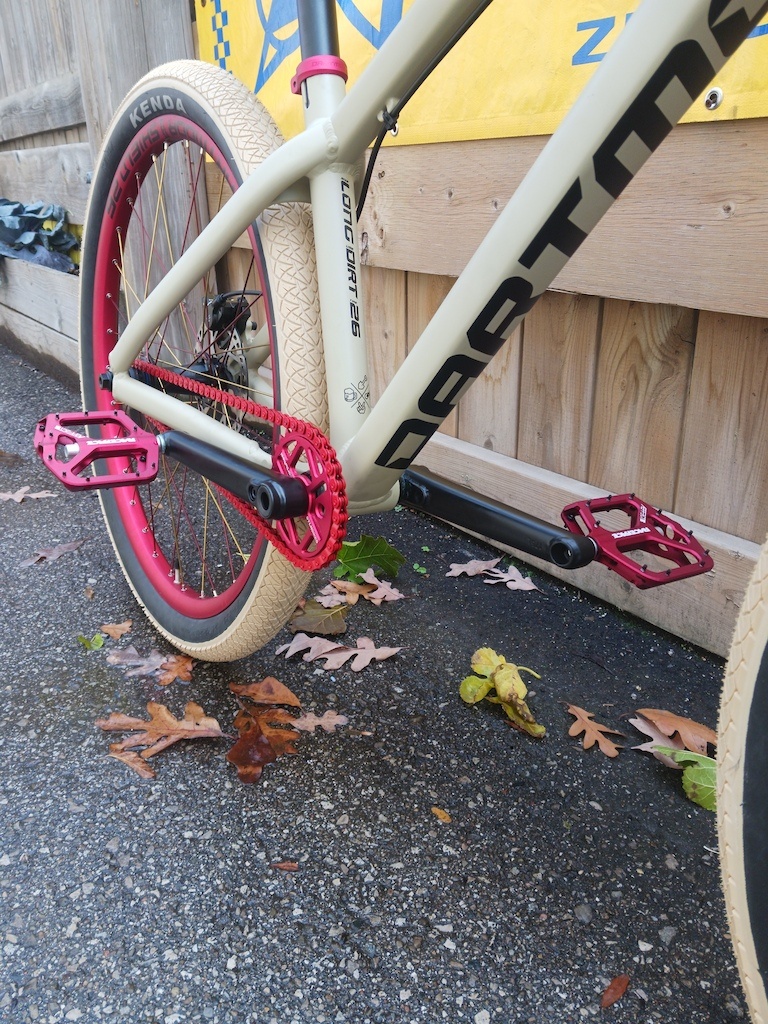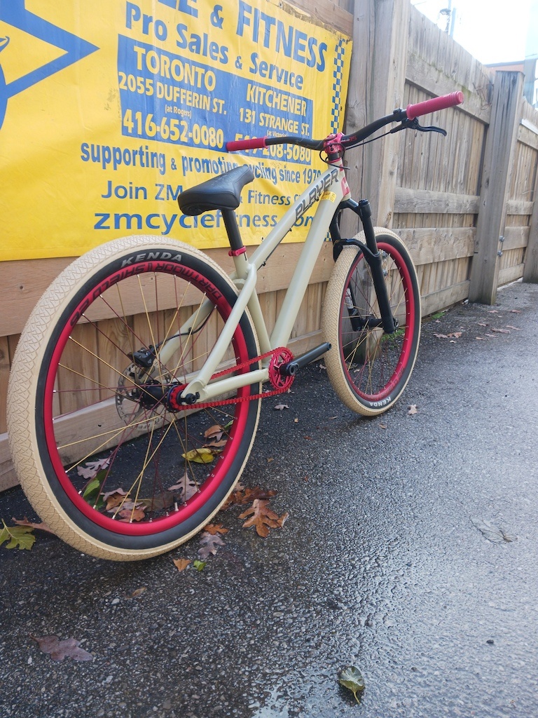 With a Light Alu DJ Frame, Heavy Duty BMX Cranks, Absolutely BombProooff Matching Wheelsz & some super sick Matching Tires