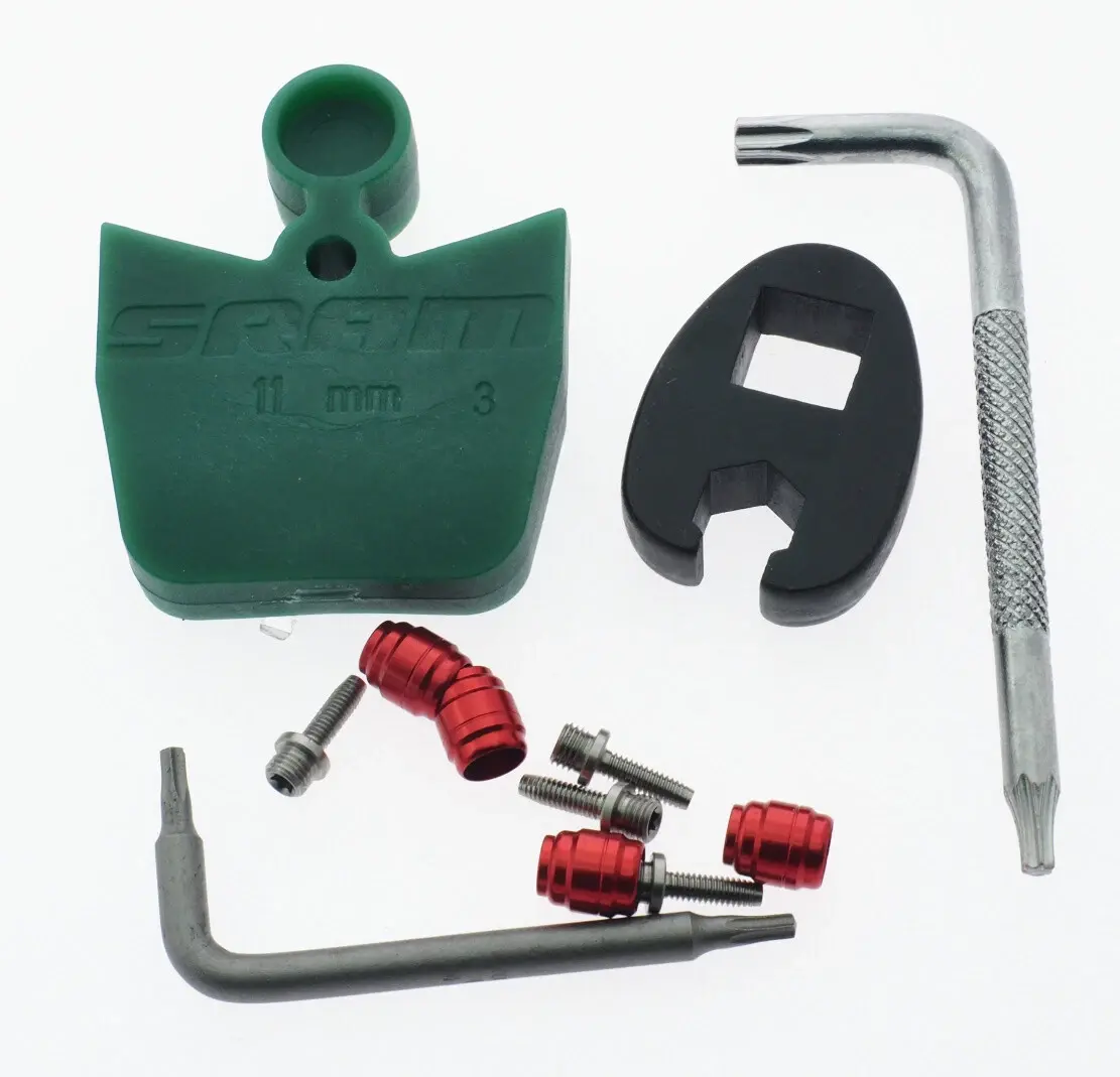 SRAM hydraulic brake bleed kit, specifically for SRAM's mineral oil-based brakes (like the newer DB8, Maven, Motive), that provides all the tools (syringes, hoses, fittings, bleed blocks, etc.) needed to remove air and refresh fluid, but requires you to purchase the actual mineral oil separately.