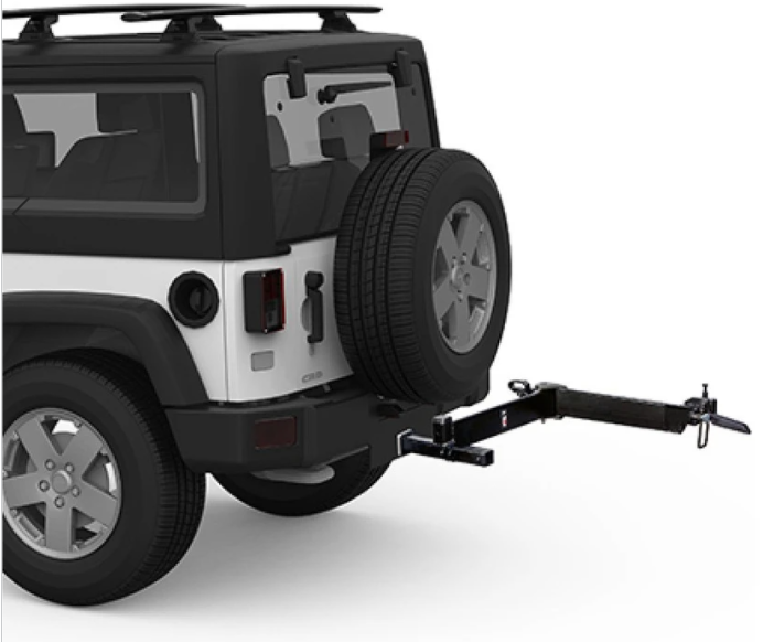 Hitch extension converts most 2" hitch products to a swing-away rack